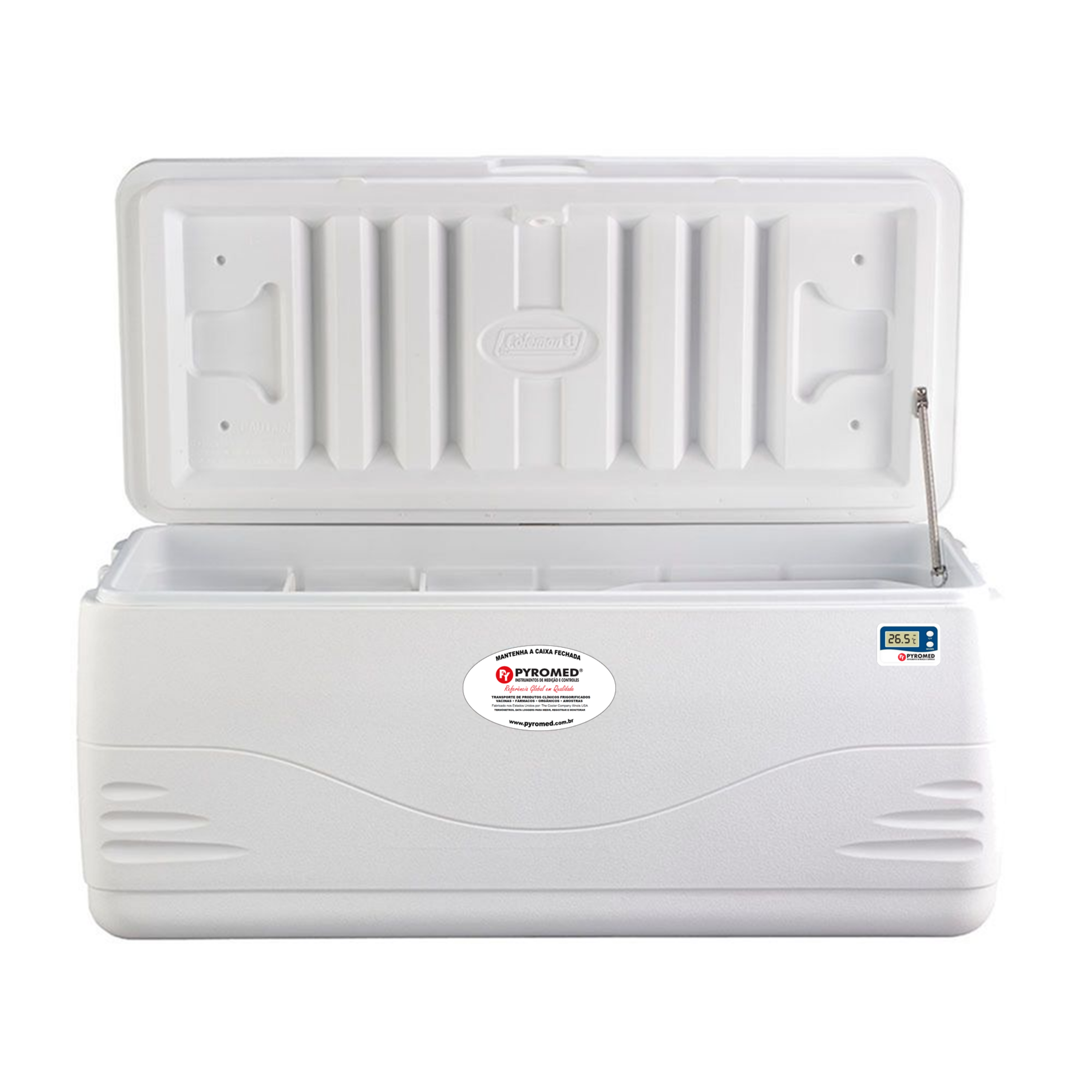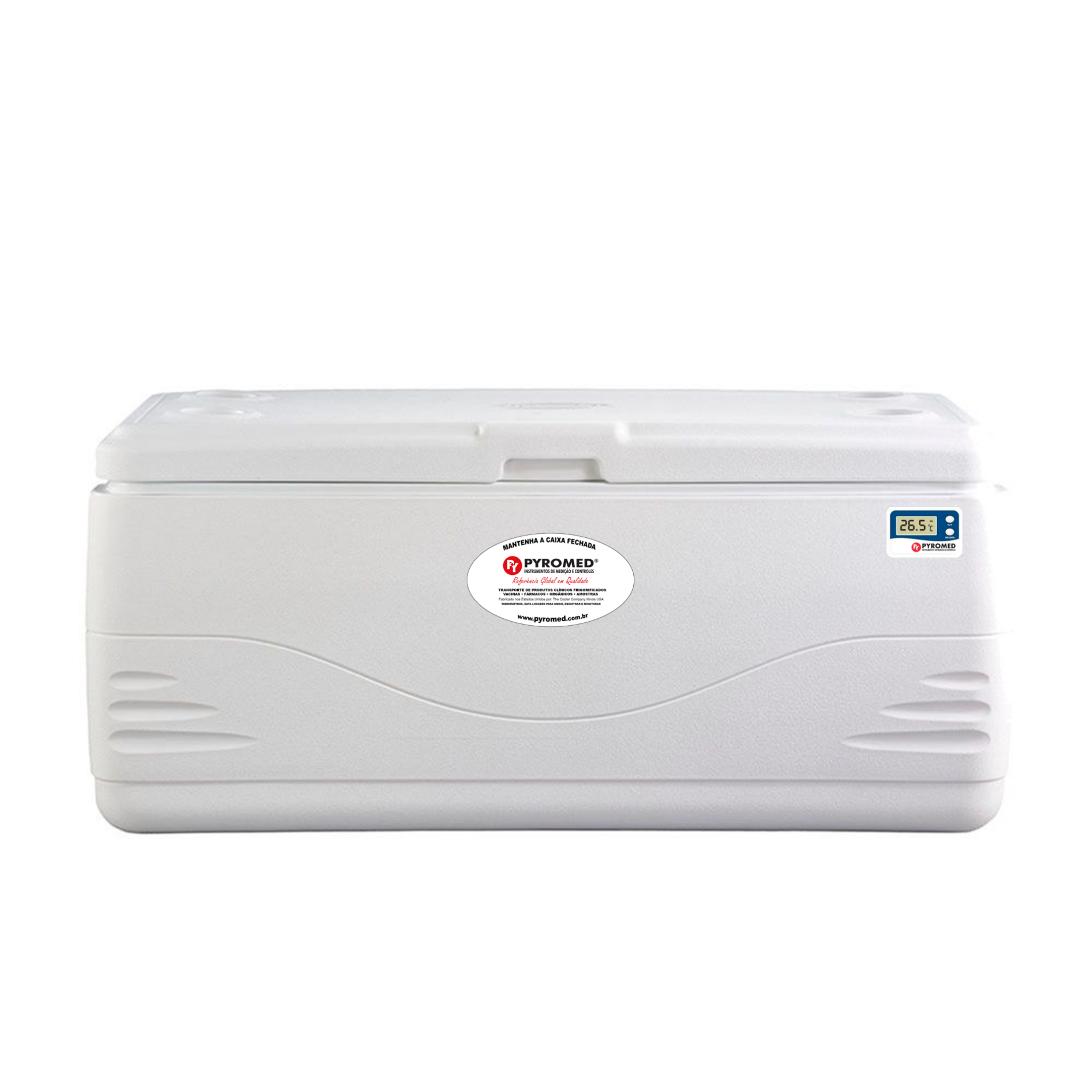 A Caixa Térmica 141,9 Litros Xtreme Marine com Termômetro Máxima e Mínima embutido e Isolamento térmico em espuma de poliuretano da PYROMED® é a solução ideal para o transporte seguro de medicamentos, amostras e vacinas que requerem condições de temperatura controlada, mesmo em ambientes desafiadores.