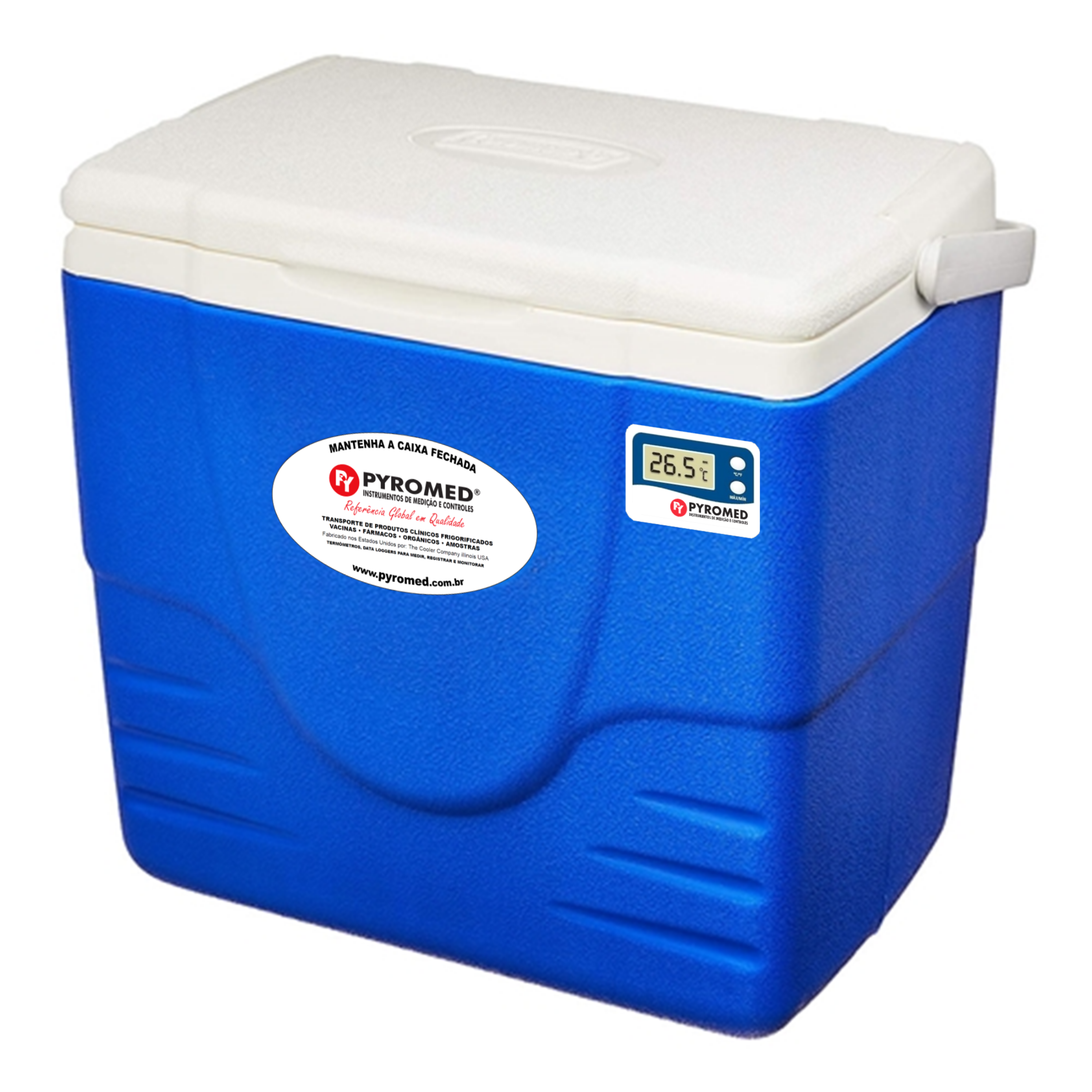 Acompanha termômetro com visor externo que mede a temperatura atual, máxima e mínima, do conteúdo interno da caixa;