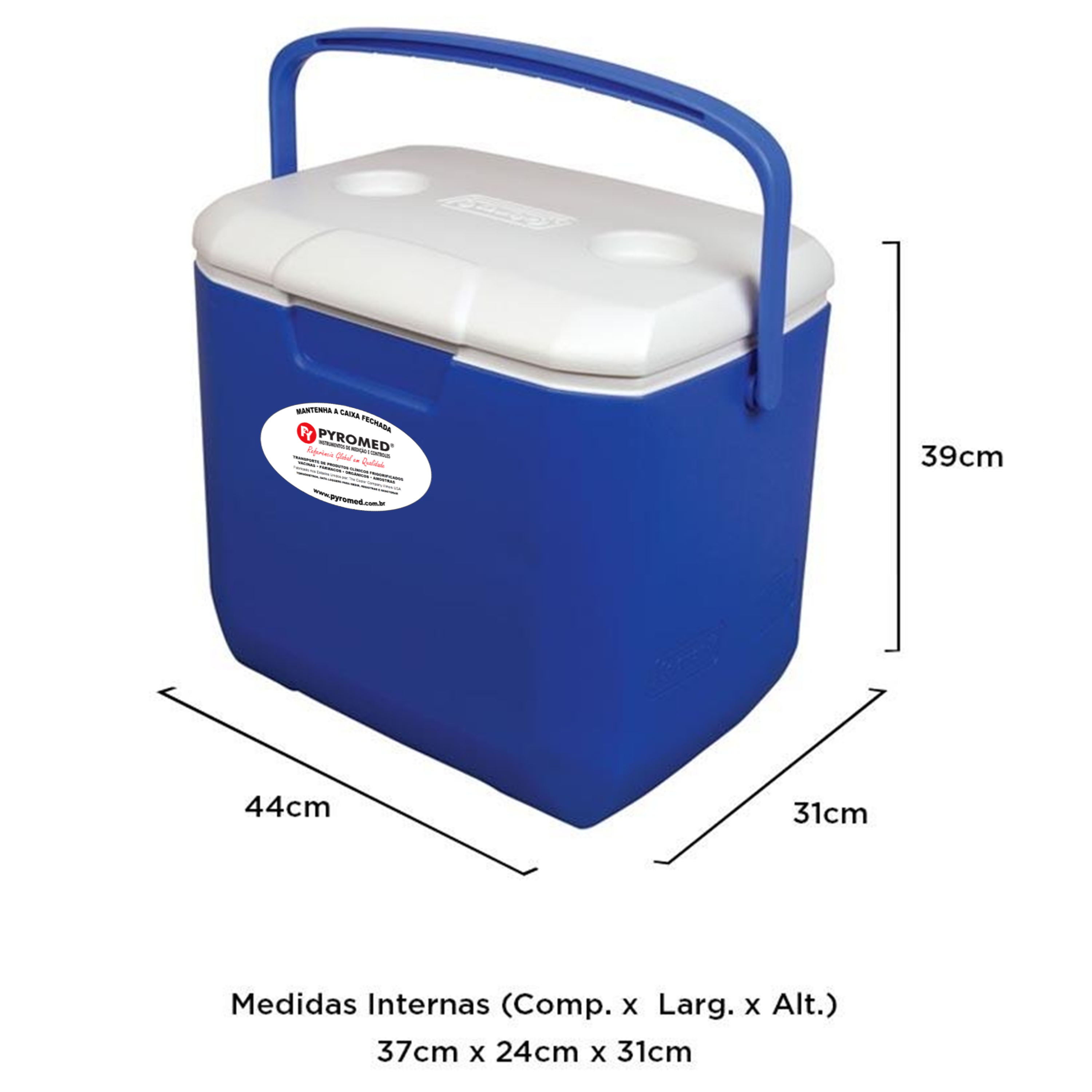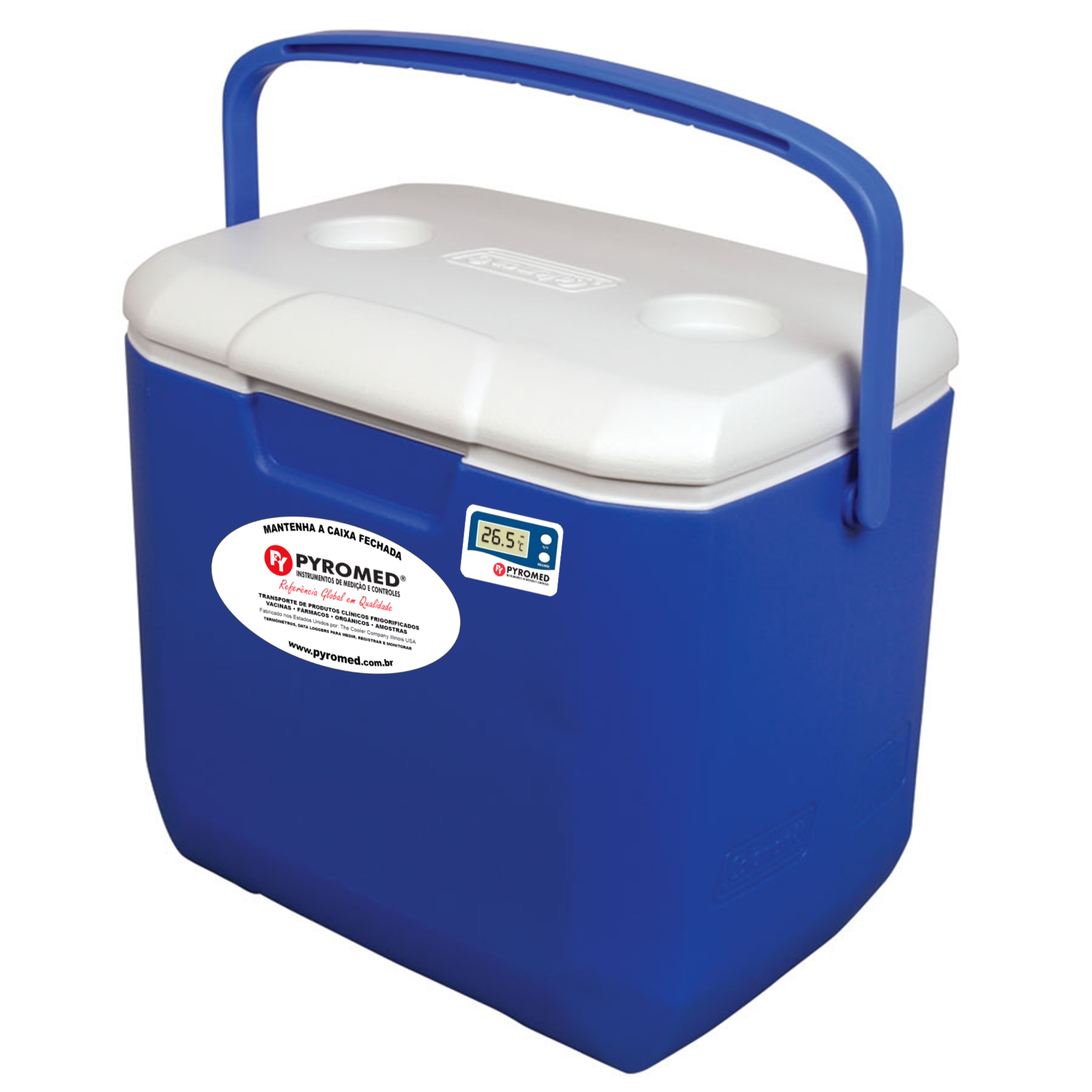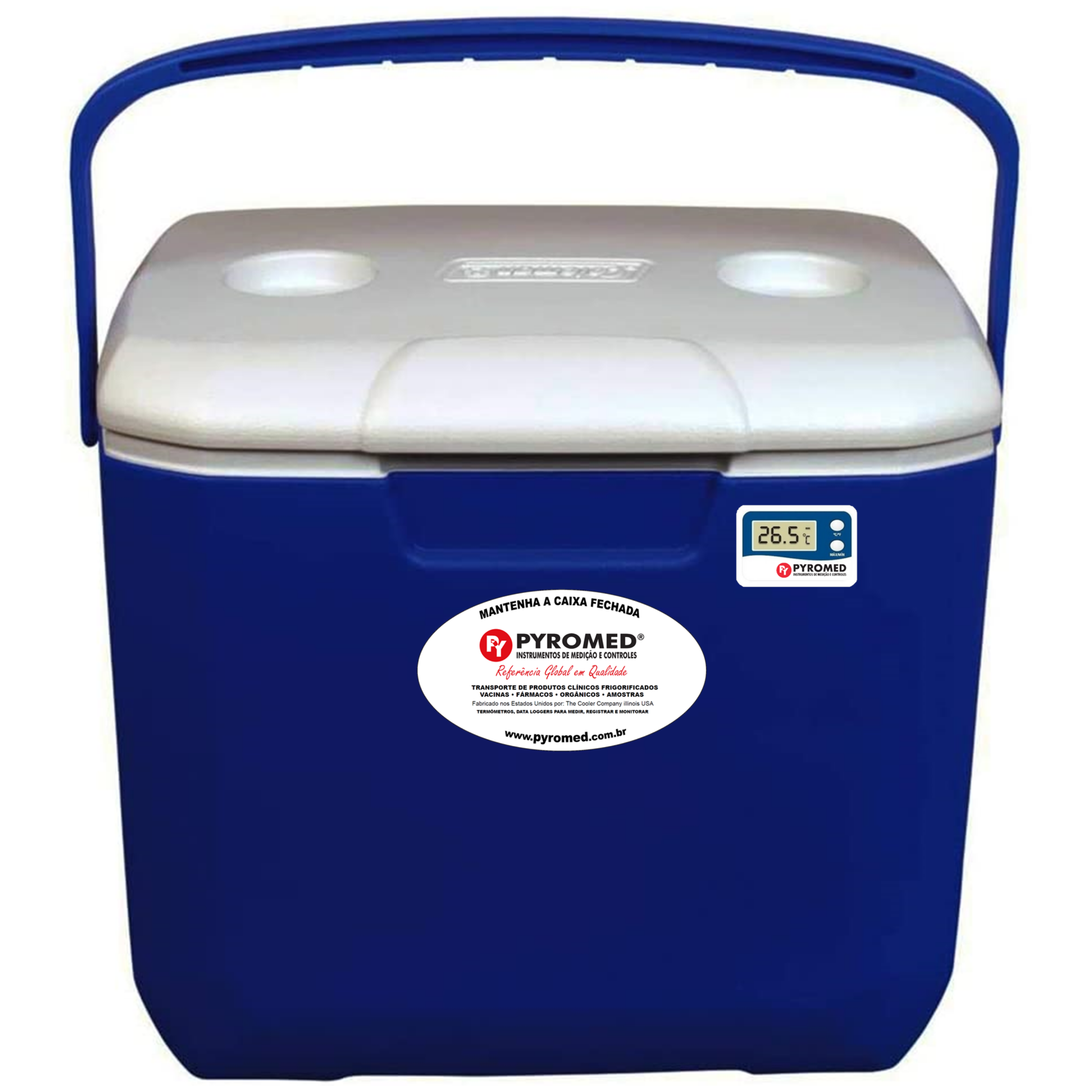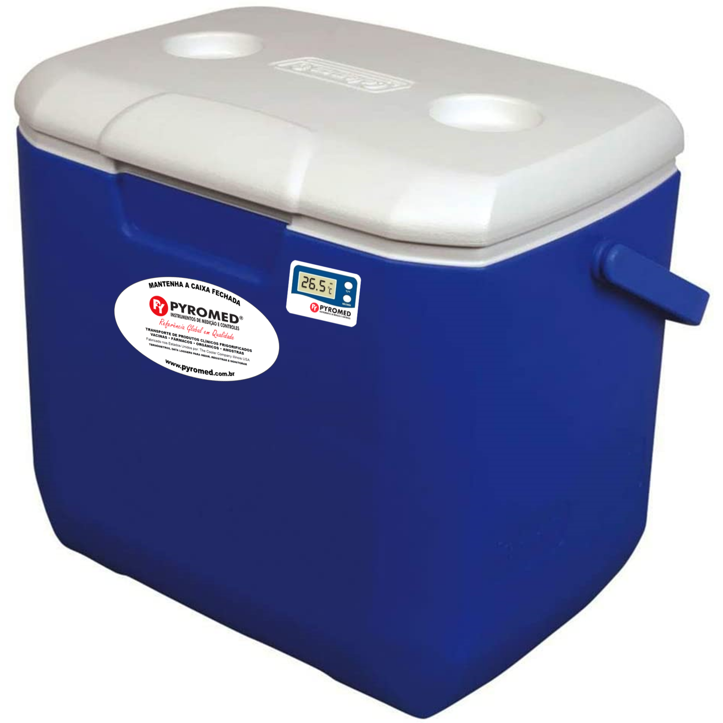 Caixa Térmica 28,3 Litros Azul Com Termômetro Máxima e Minima | PYROMED®