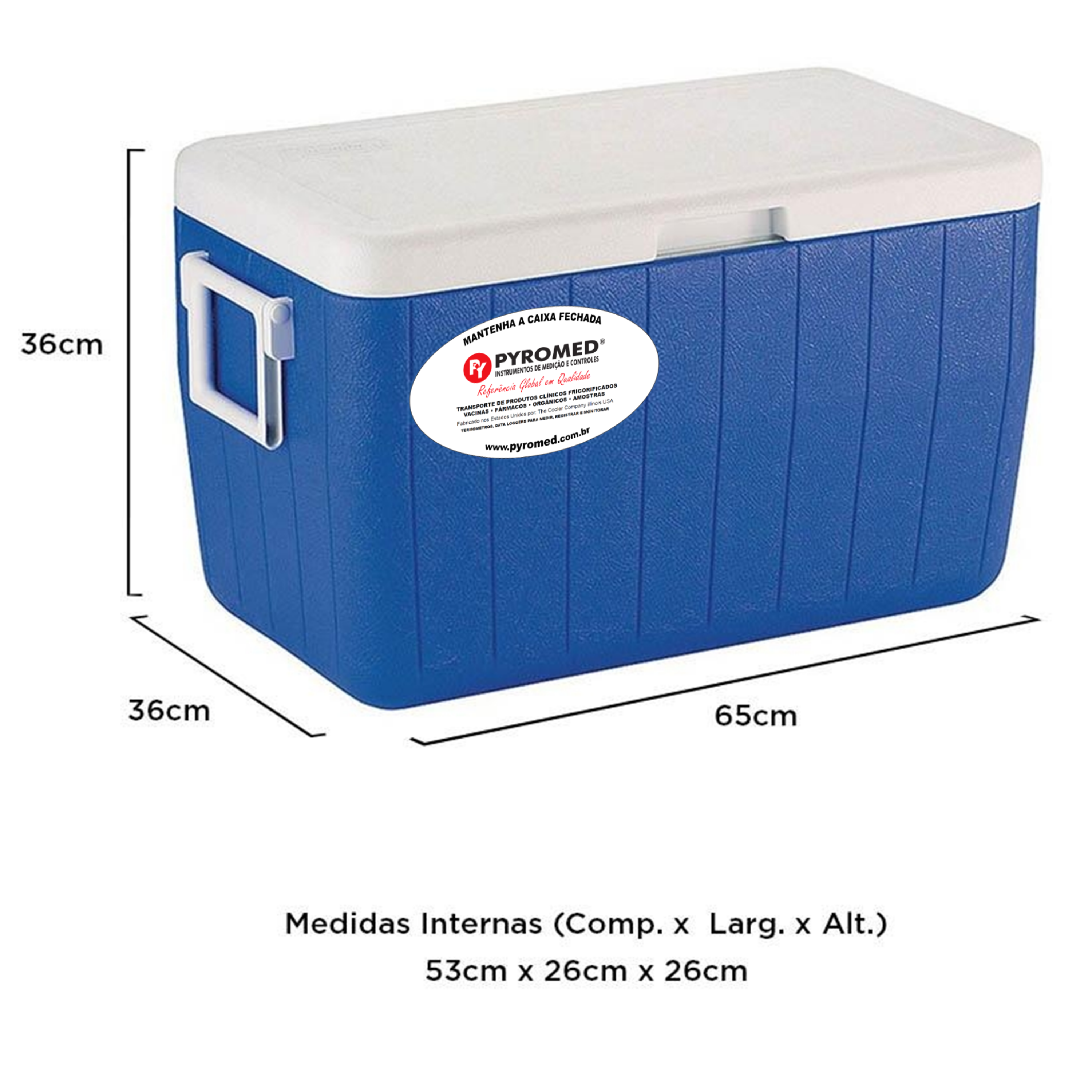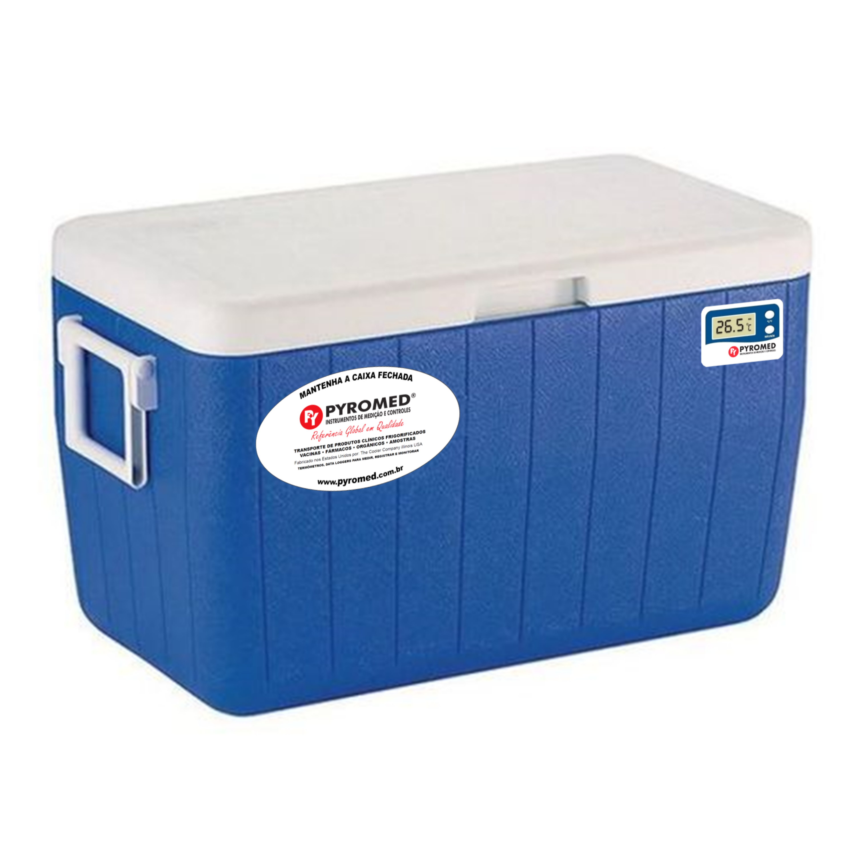 Acompanha termômetro com visor externo que mede a temperatura atual, máxima e mínima, do conteúdo interno da caixa.