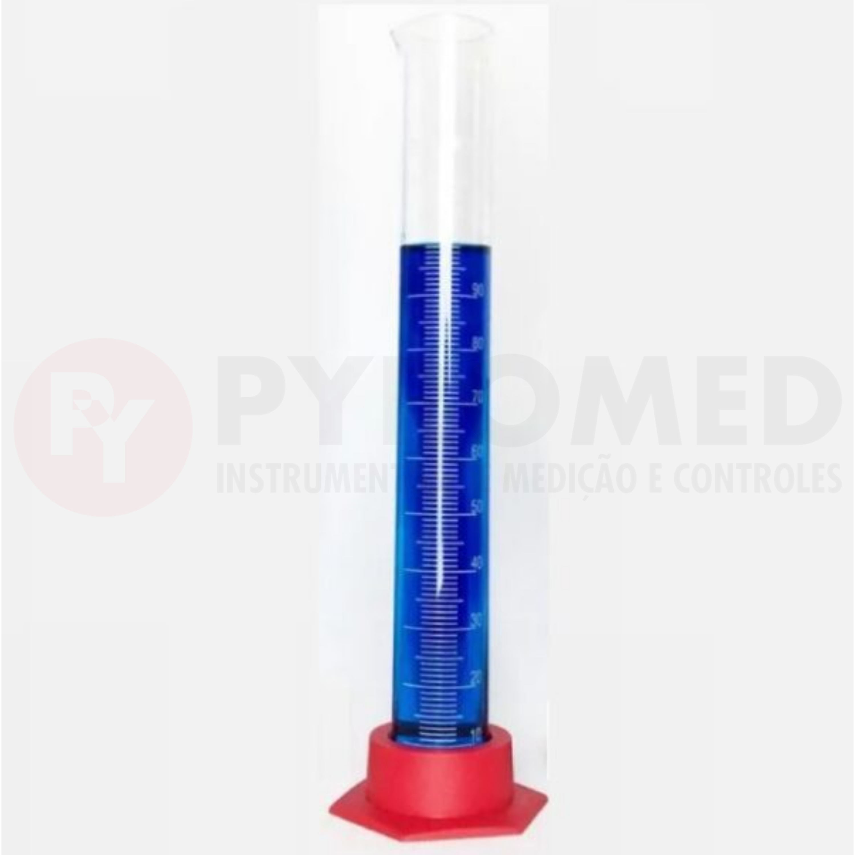 Proveta fabricada em vidro, graduada, com gravação de fácil leitura e bico.