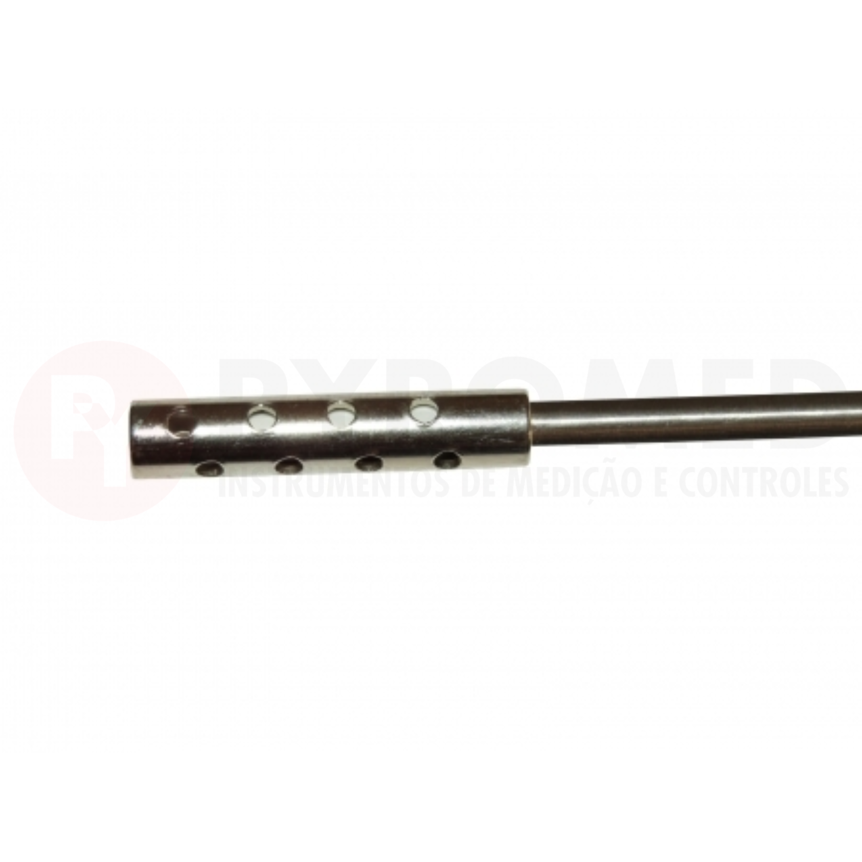 A sonda PYROMED® PY03A para ar e gases é equipada com um termopar tipo K como seu sensor de temperatura. Sendo um sensor padrão, é compatível com qualquer termômetro que suporte esse tipo de termopar. Sua haste é fabricada em aço inoxidável, com pequenos orifícios na extremidade para reduzir a inércia térmica e melhorar a velocidade de resposta.