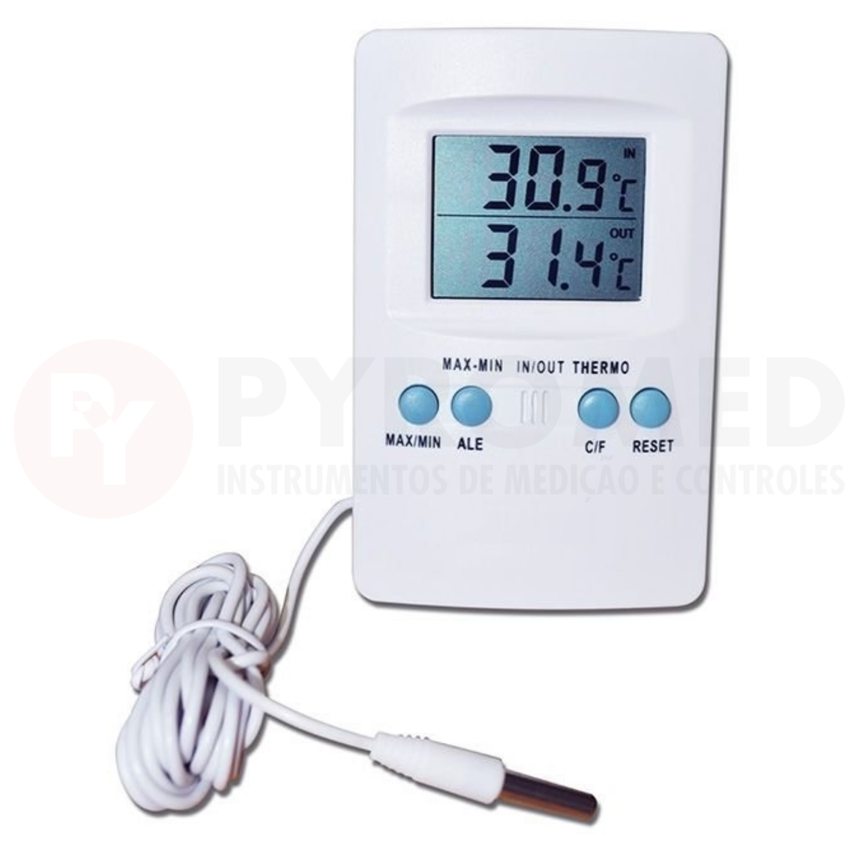 Memória integrada para registrar a temperatura máxima e mínima.
