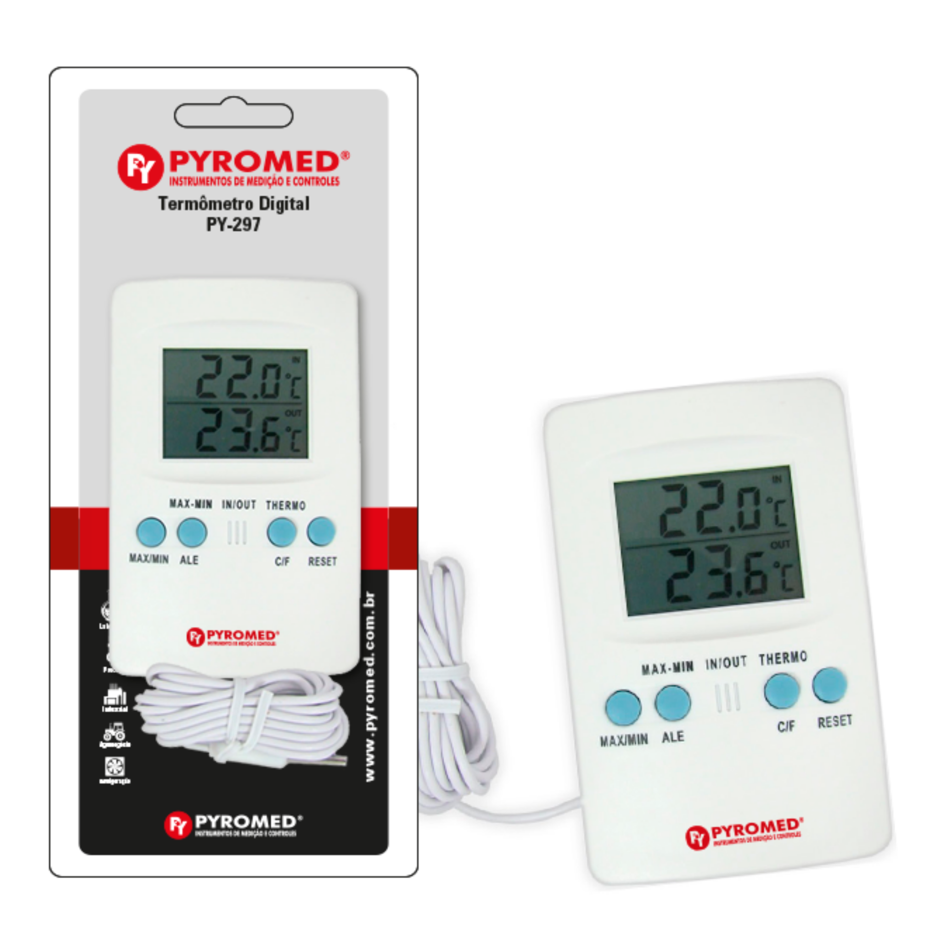 Com o Termômetro Digital PYROMED® PY297, você terá o controle total sobre o ambiente, permitindo que tome decisões informadas com base em dados confiáveis de temperatura interna e externa.